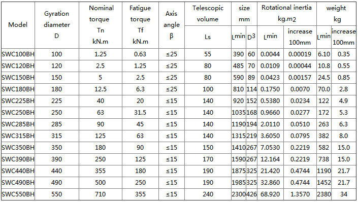 Features and application of SWC-BH universal joint: It is connected to two different axes of shaft drive, which can not be buffered and damped. It adopts integral fork structure, and the bearing is fixed without bolts, which avoids loose bolt breakage and easy maintenance. It has long service life, high reliability, large bearing capacity and large inclination. It can work under the condition of β≤5°~25°. Suitable for rolling machinery, lifting and transportation, construction machinery, petroleum machinery and other heavy machinery. There are seven structural types to meet different installation types: